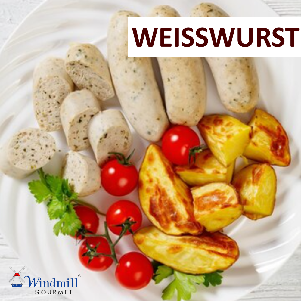 - German white sausage, seasoned with parsley, onions and other spices.